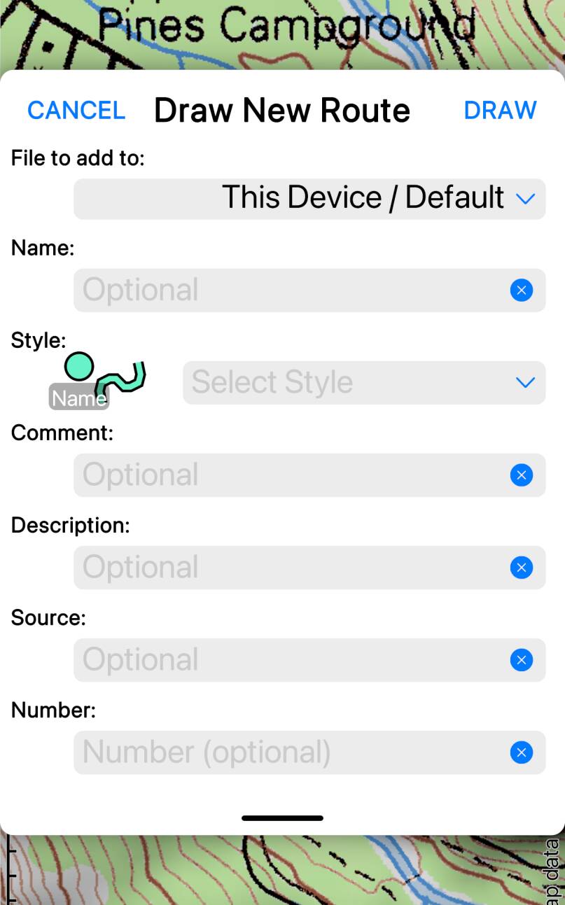 This button is enabled when a route or track is selected. Tap to add this route or
