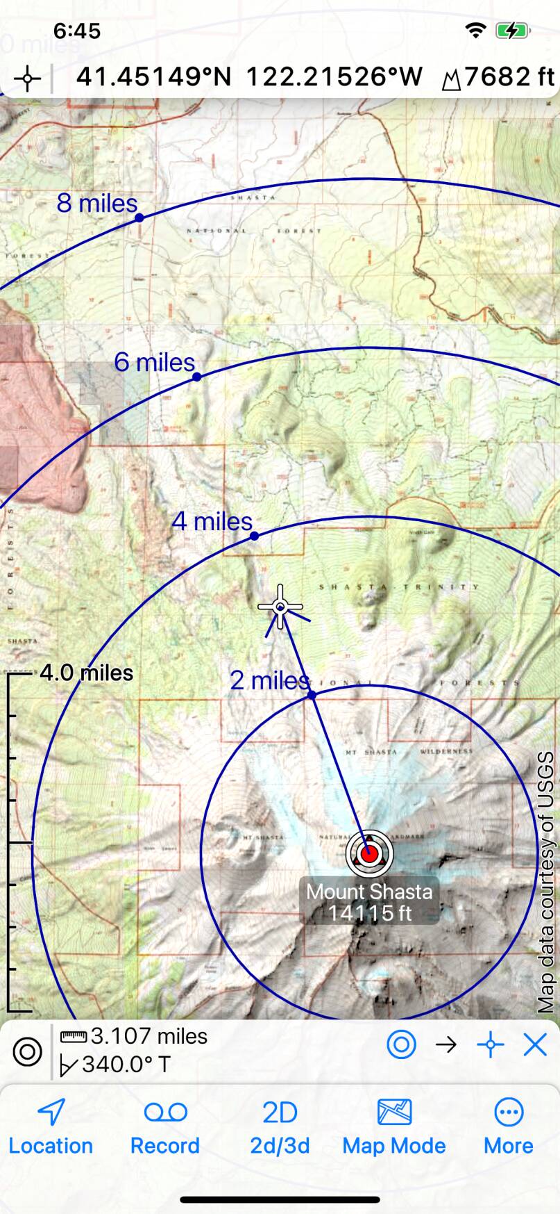 Distance rings are only shown in 2D mode.