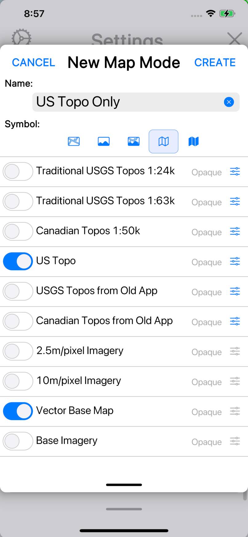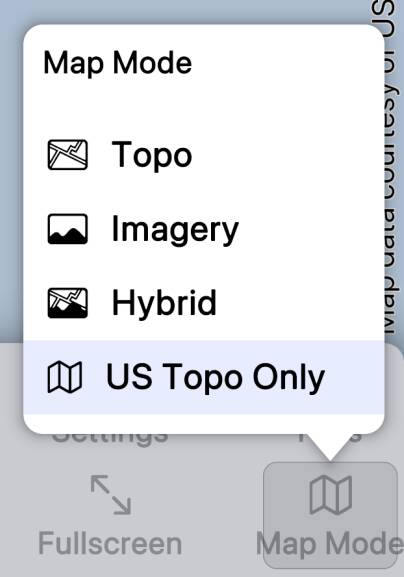 By default the app offers three map modes - Topo, Imagery and Hybrid - but