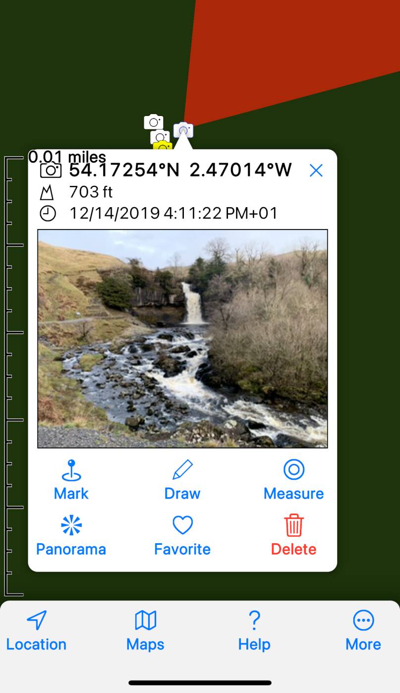 is present, the app will show it with a red highlight on the map (not in 3D mode).